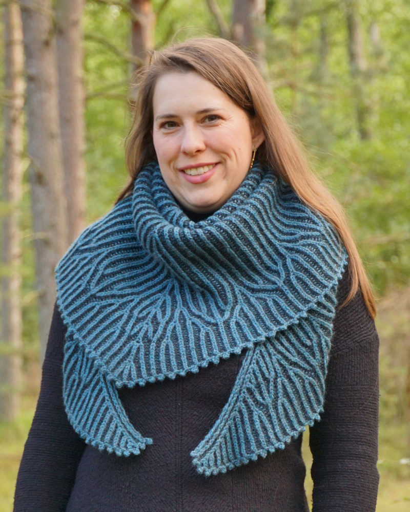 If you’ve never tried knitting two-colored brioche before, ROOTS AND WINGS is the perfect project to give it a go. It’s pretty simple at first, so you can get to know the technique. Then you get to try out different types of brioche increases and decreases on the gorgeous edge of the shawl. It’s so much fun!