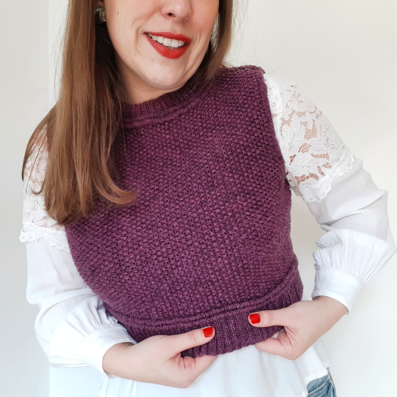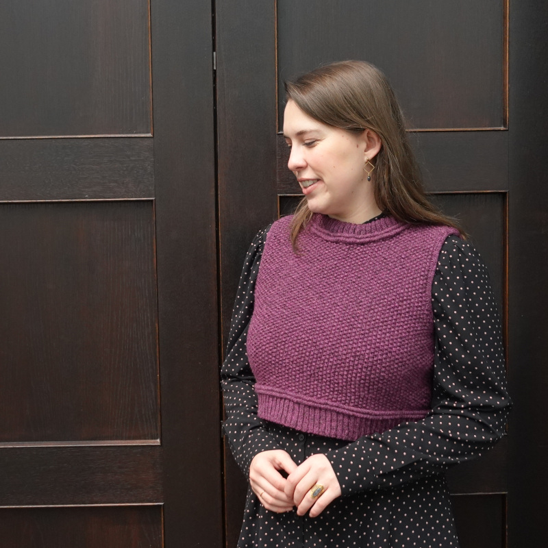 CHAINMAIL is a cute, cropped, Seed stitch slipover with beautiful finishing. I created
